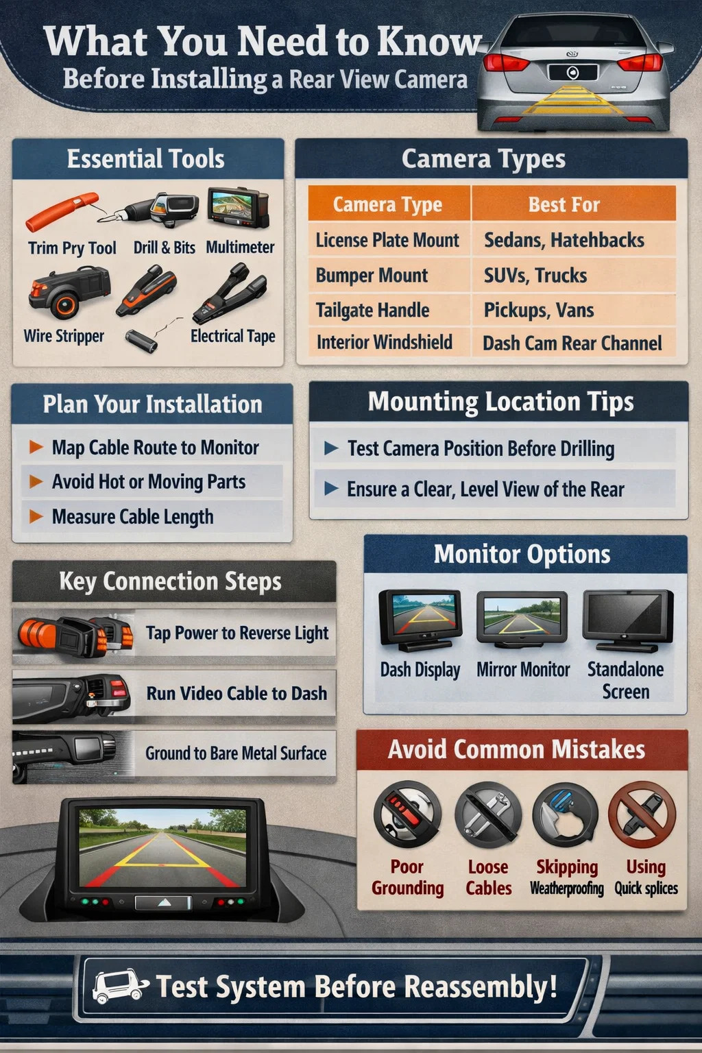 Jopa kokeneet DIY-mekaanikot tekevät nämä virheet peruutuskameran asennuksen aikana. Niiden tiedostaminen etukäteen säästää aikaa ja estää ajoneuvon tai kamerajärjestelmän vahingoittumisen.