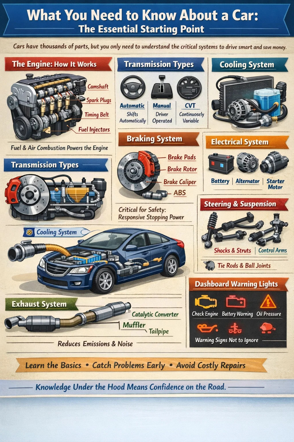 Olitpa ensiostaja, uusi kuljettaja tai joku, joka on kyllästynyt nyökkäämään mekaanikkoa, autosi avainkomponenttien tunteminen antaa sinulle todellista luottamusta. Huomaat varoitusmerkit aikaisemmin, kysyt parempia kysymyksiä ja vältät korjaukset, joita et itse tarvitse.